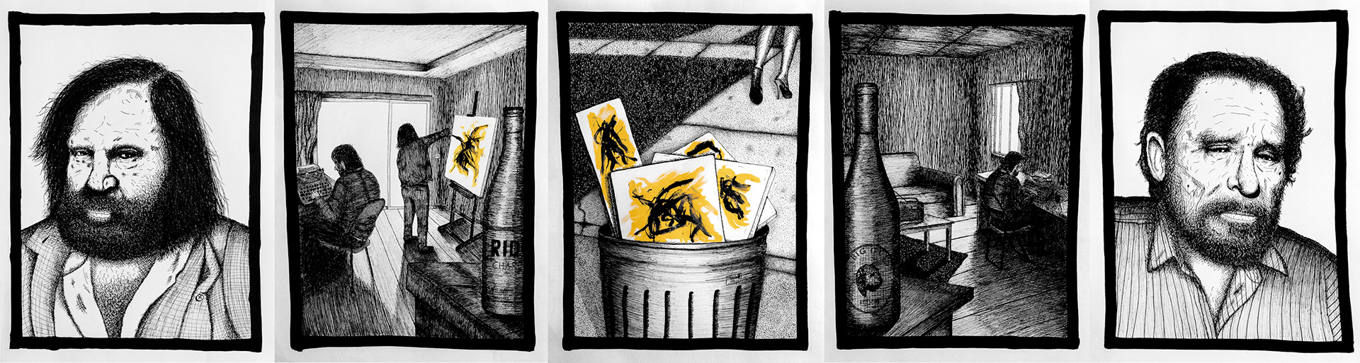 Illustrations based on Charles Bukowski's poem "Two Drinkers"